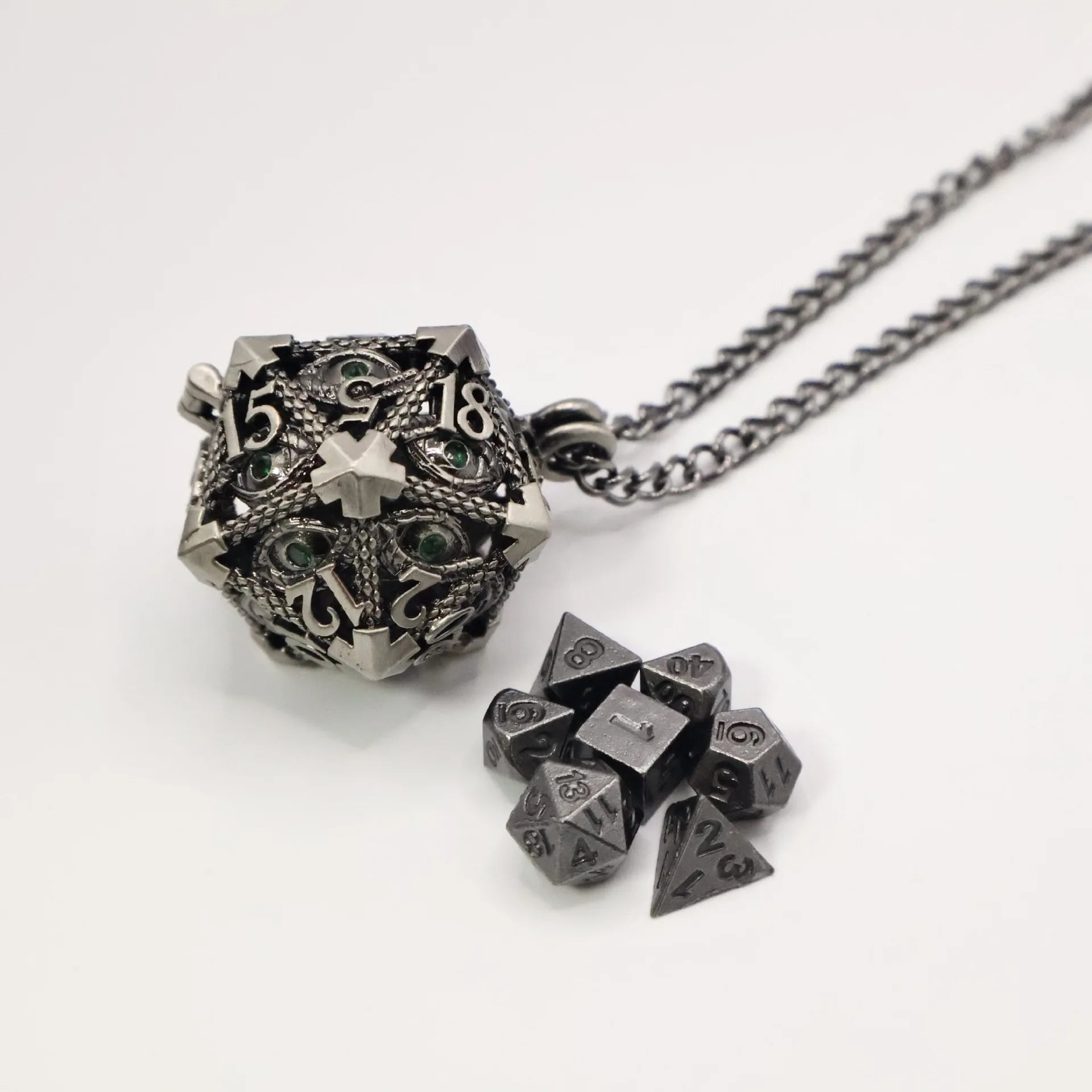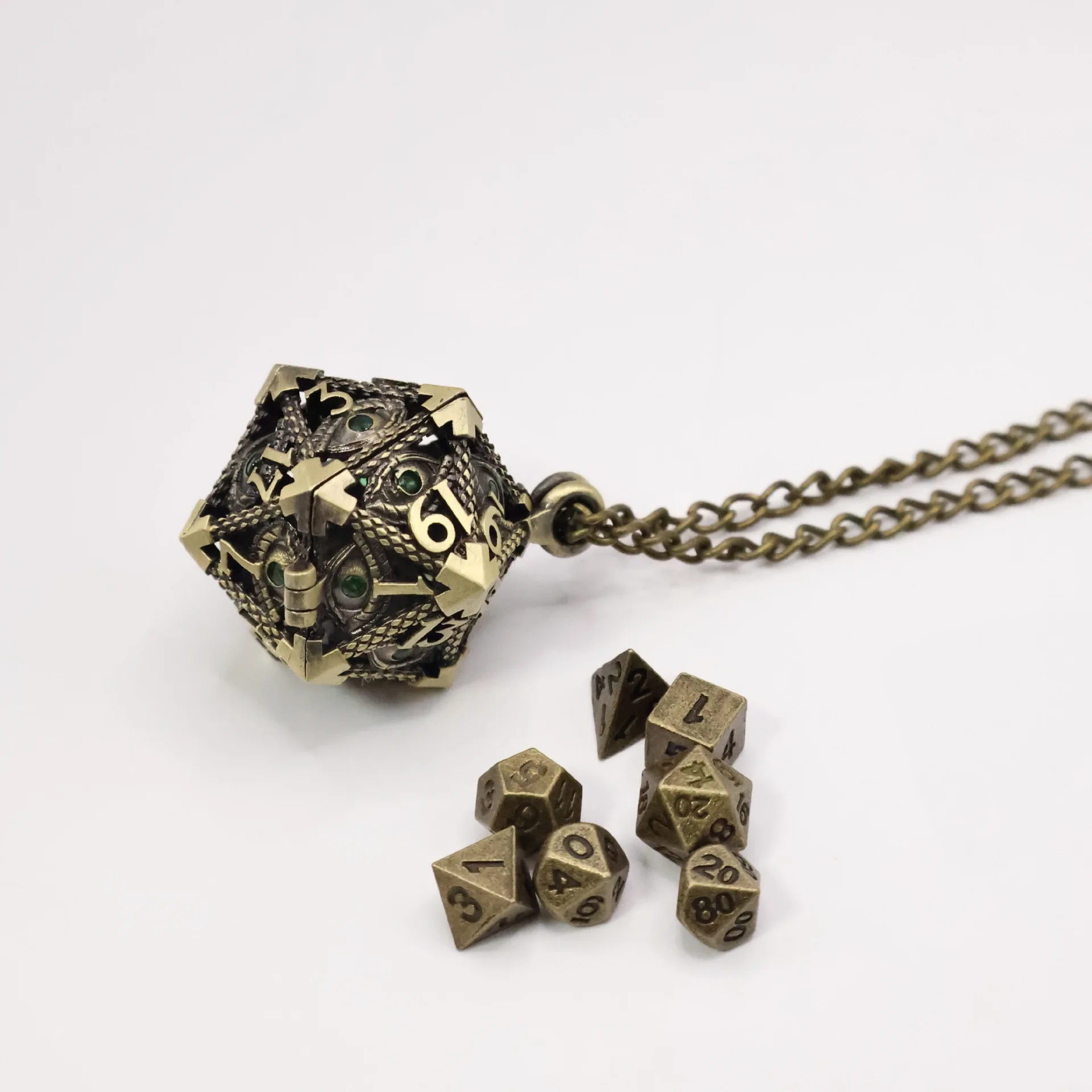 Diamond DND Dice Jewelry Necklace Hollow D20 Metal Case D20 Dragon metal Dice w/ Diamond Polyhedral Metal Dice Set Gaming Dices