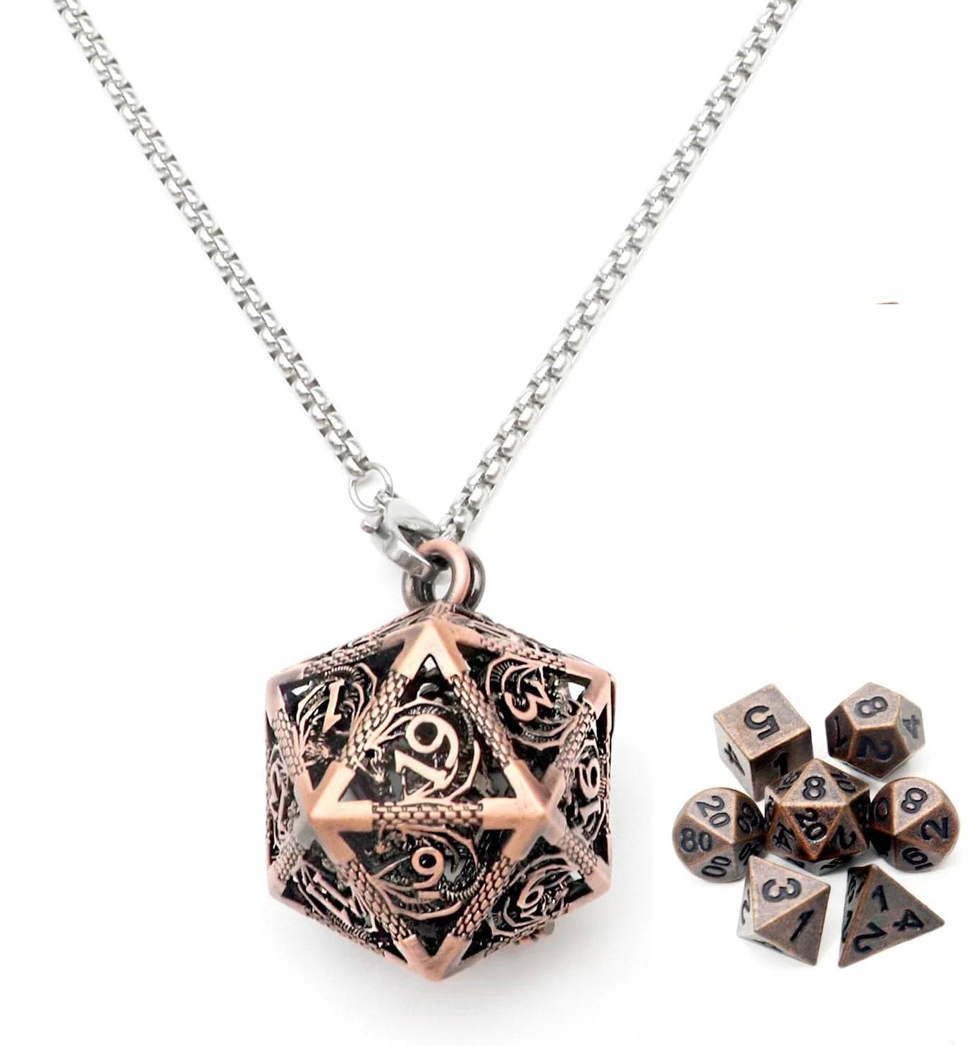 You will get Mini dice set, Hollow D20 Dice Case, Quality Keychain and Necklace Chain