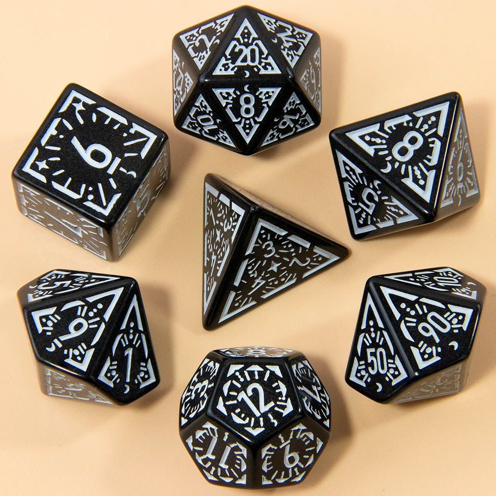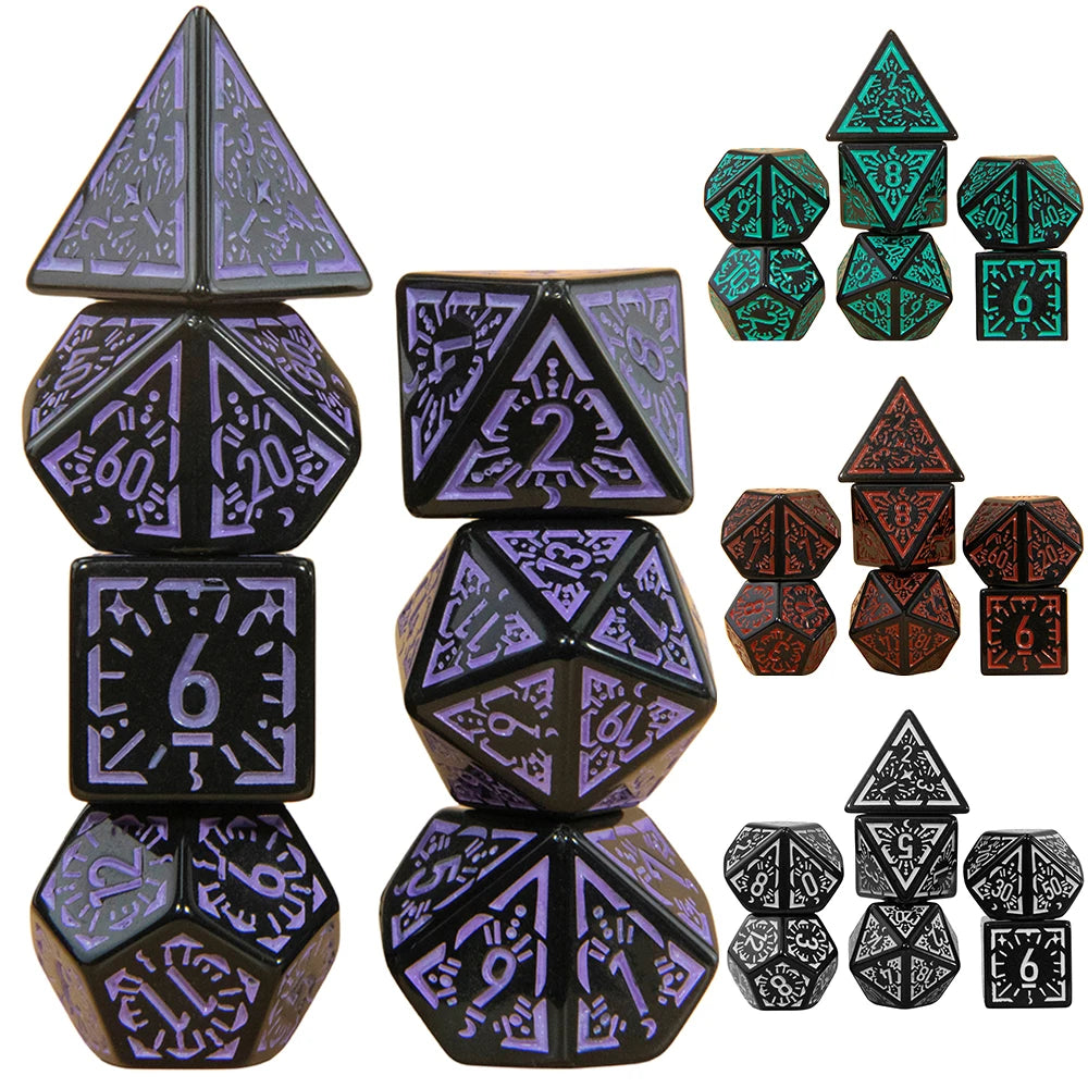 DND Carving Pattern Dice 7Pcs RPG Polyhedral Dice Set for Boardgame As Gift Entertainment Accessories