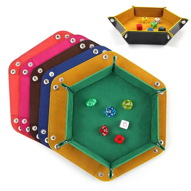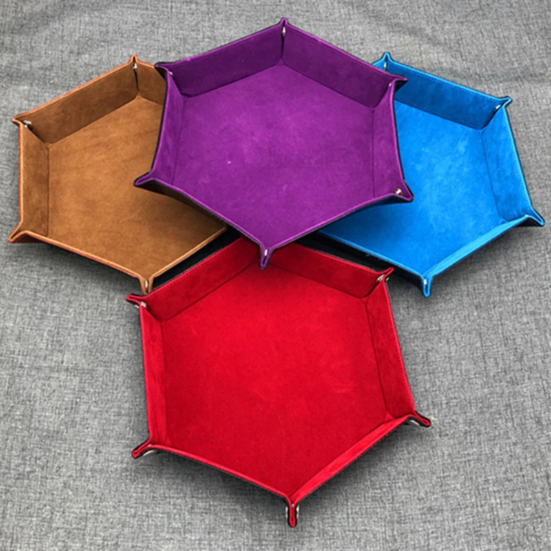 High Quality Leather Folding Hexagon Dice Tray Purple Dice Box For RPG DnD Games Dice Storage Collapsible Phone Key Coin Storage