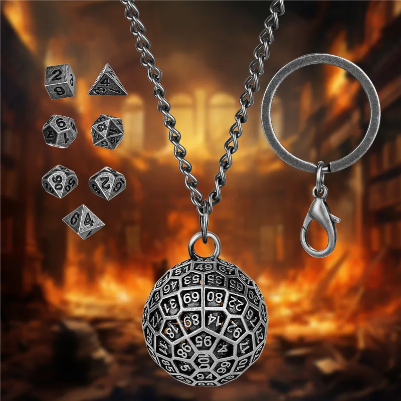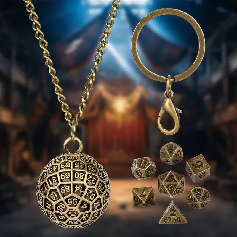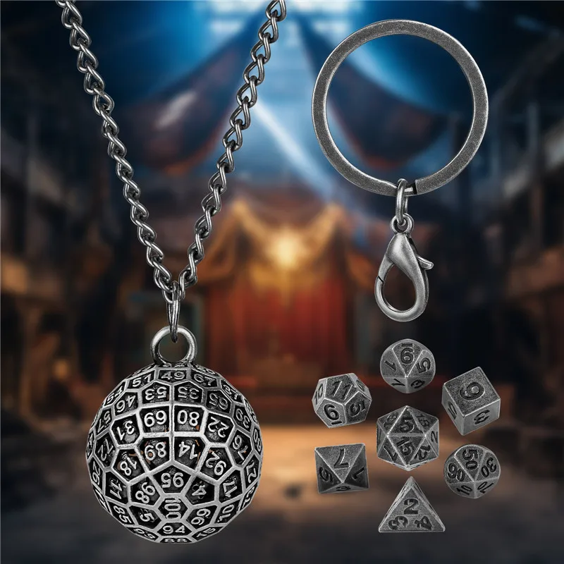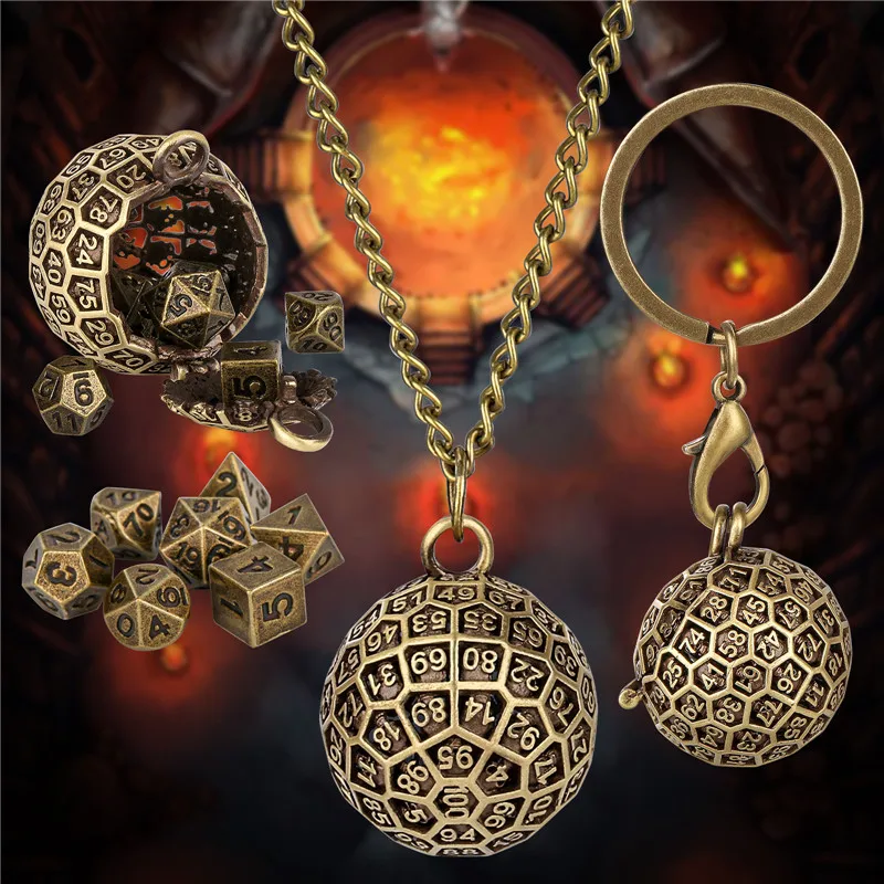 Portable Pendant Necklace Chain Key Ring Round D100 Storage Case for 7pcs Tiny Metal Polyhedral Dice Set Entertainment Accessory