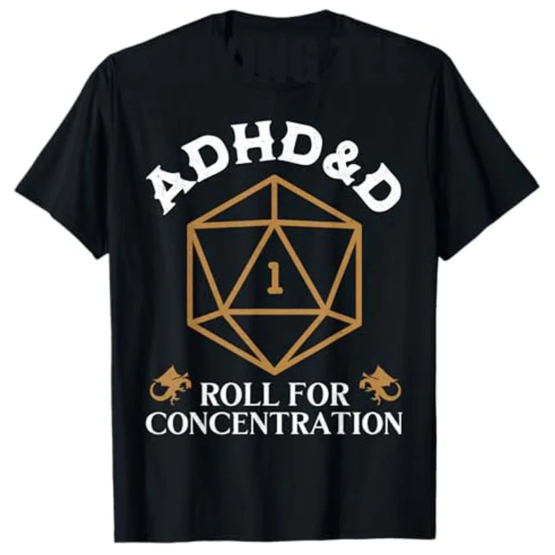 Vintage ADHD&D Roll for Concentration DnD Men Women T-Shirt RPGs Gamer Graphic Outfit Funny Saying Tee Short Sleeve Blouses Gift
