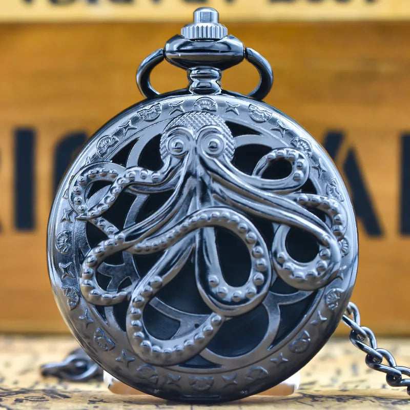 Vintage Octopus Pocket Watch Box 7 Pieces Mini Metal Polyhedron Dice Pendant Necklace Party Board Game Accessories Kids Gifts